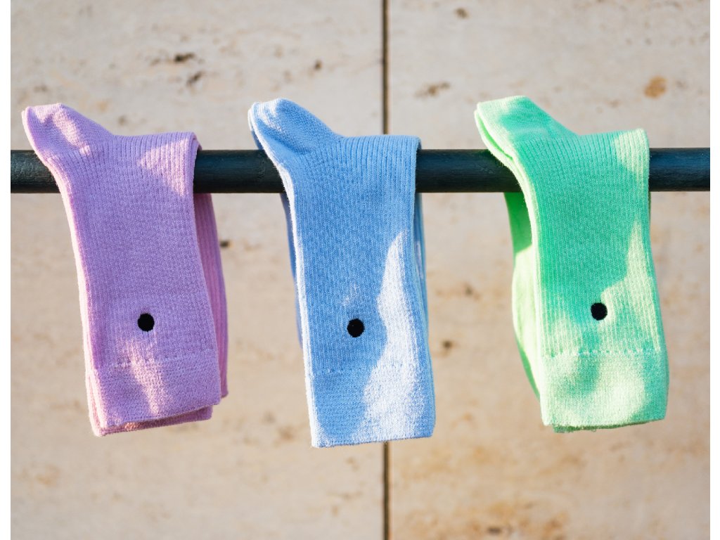 Sada světle modrých, růžových a zelených bavlněných ponožek inspirovaných koupelnami Volmanovy vily.